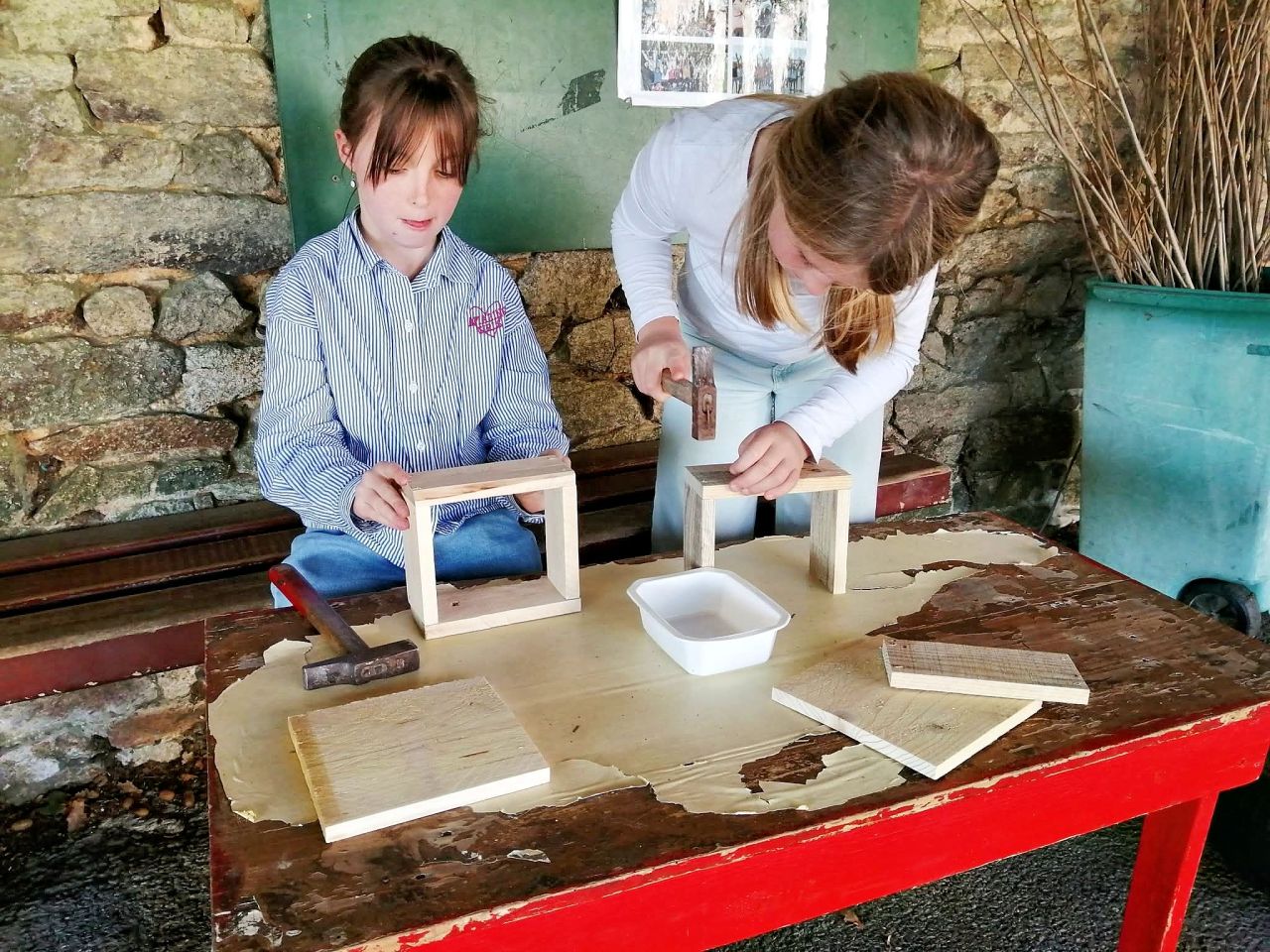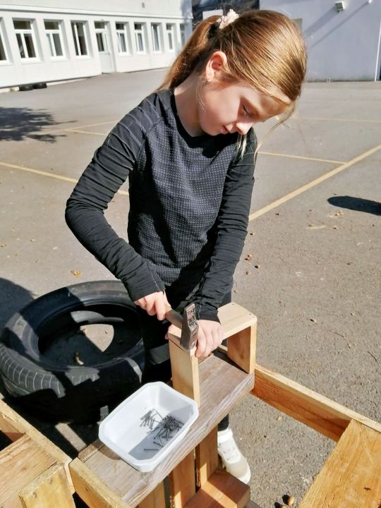 Après les mesures et le sciage des planches, il faut poncer et clouer les pièces. 🔨