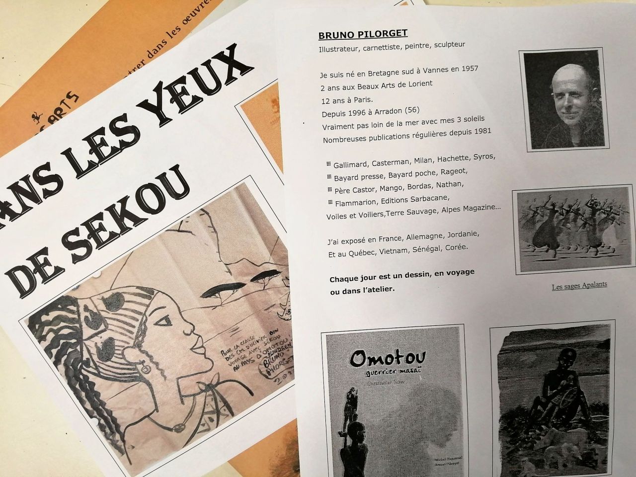 Nous avons suivi les aventures de Sekou dans l'album Omotou illustré par Bruno Pilorget, ponctuées parrot des activités plastiques. ✏️