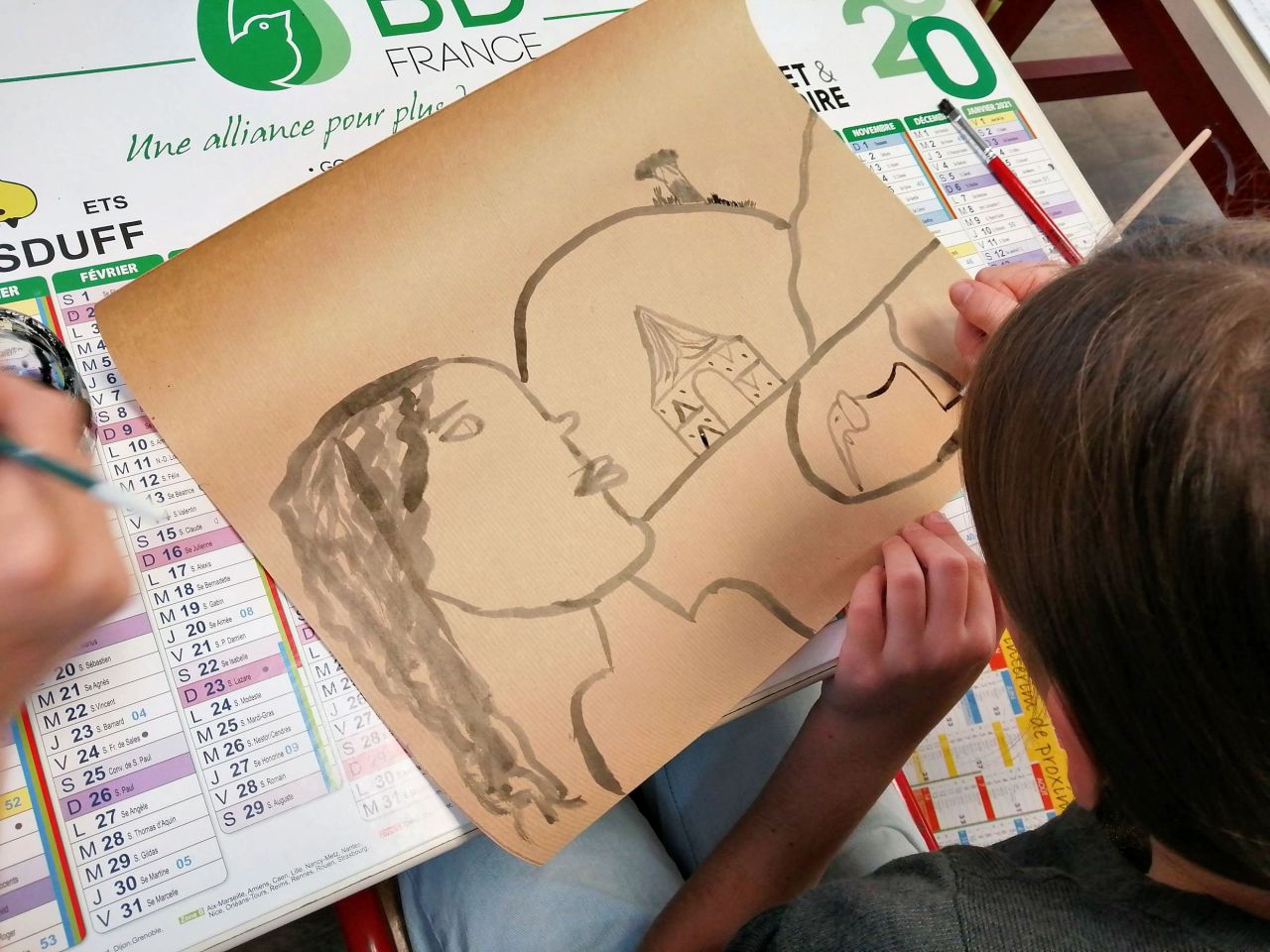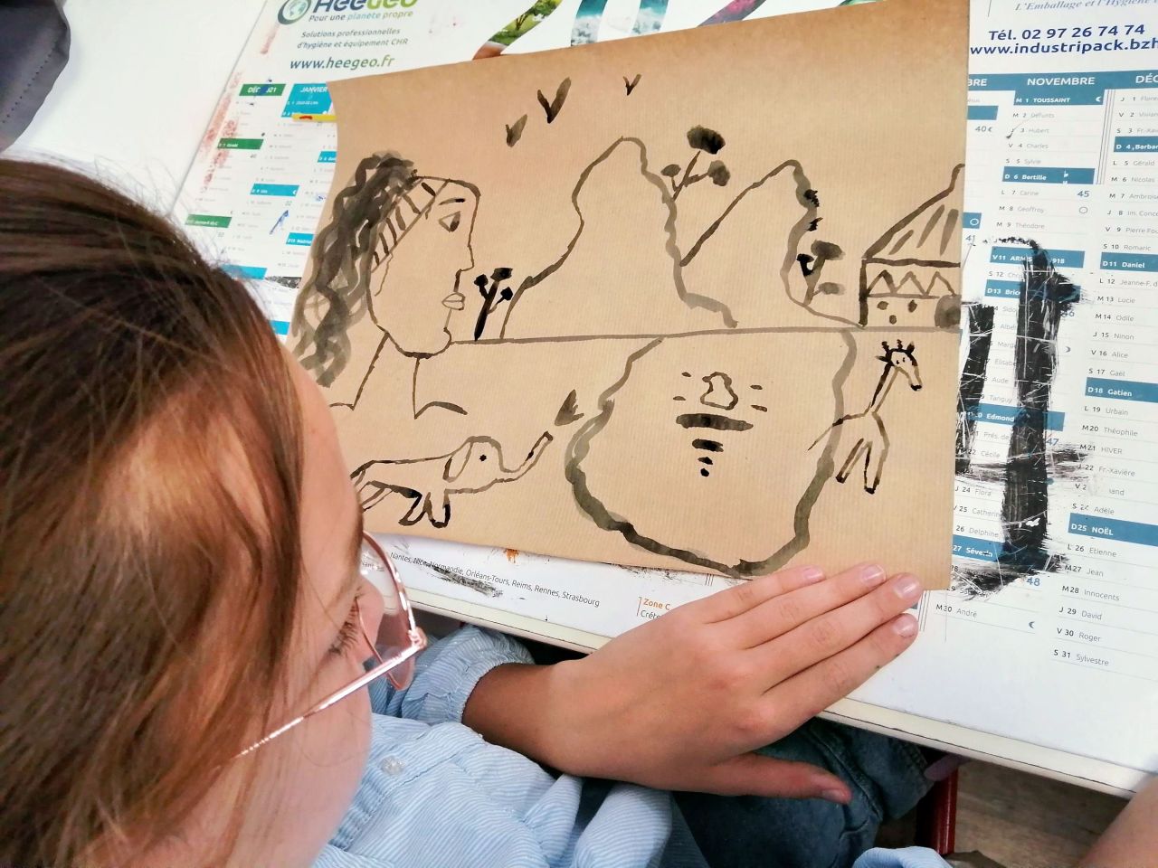 Avant de réaliser à l'encre sur papier kraft, un paysage " Dans les yeux de...