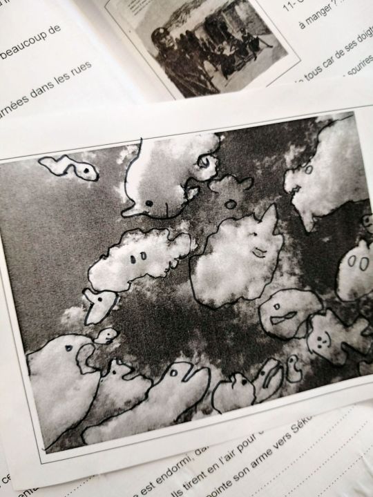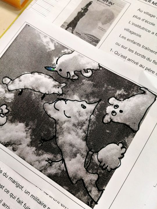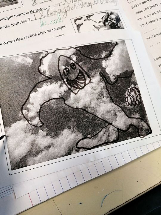 Tout au long du récit, nous avons vu dans les nuages les personnages de Sekou, et appris à le dessiner avec ses émotions... 😒😊