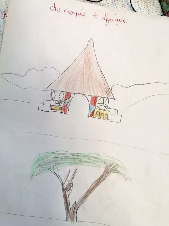 Nous avons réalisé nos croquis d'Afrique : ceses, arbres, animaux sauvages... 🦁🦒