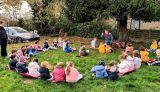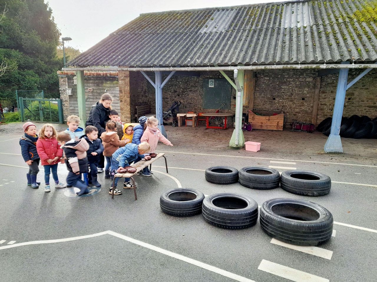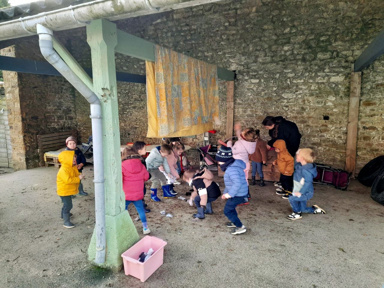 Jeudi nous avons fait classe dehors. Quelques gouttes de pluie se sont invitées mais elles ne sont pas restées!