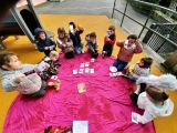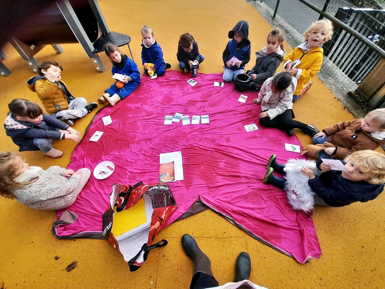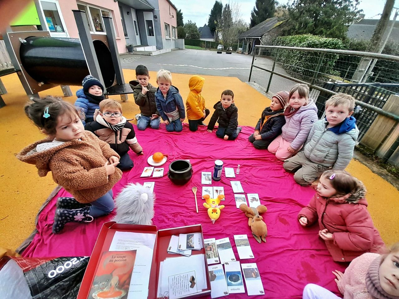 Nous avons continué d’apprendre le vocabulaire de l’histoire « La soupe au potiron » et nous avons commencé à la mettre en scène.