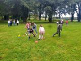 Un relais alphabet, chaque joueur de chaque équipe devait s'élancer pour rapporter la bonne lettre (je suis avant le m, je suis après le c, je suis entre t et v, je suis la 12ème lettre de l'alphabet) puis on range dans l'ordre alphabétique les lettres gagnées et on les compte.