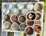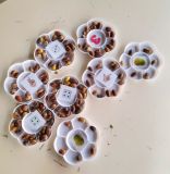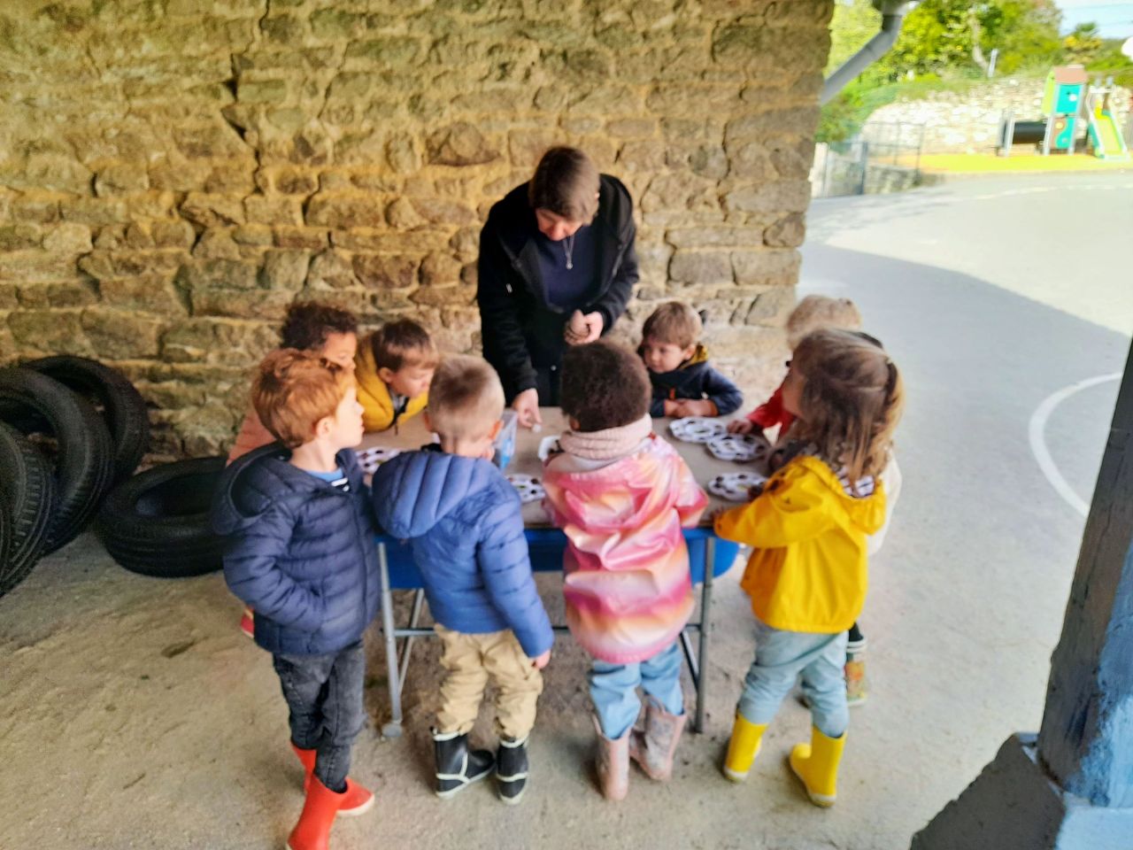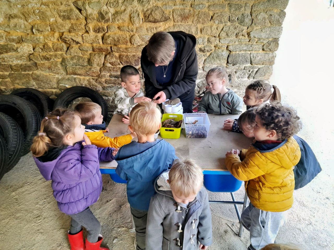 Nous avons trié les glands et nous avons réalisé plusieurs collections dans les assiettes fleurs.