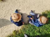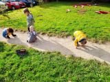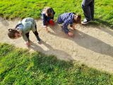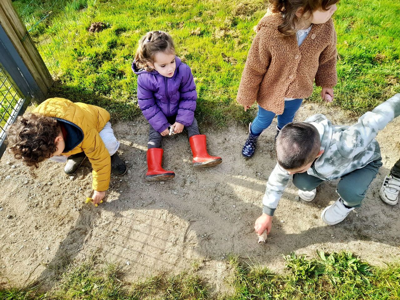Nous avons écouté l'histoire "Sur les traces de Maman" et nous avons essayé de laisser des traces d'animaux dans le sable.