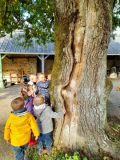 Nous avons salué le chêne de la cour, ramassé des glands, observé un gland germé et tenté de trouver comment faire germer les nôtres. Dans la terre, le sable ou les feuilles? Muriel a proposé aussi d'essayer dans du coton humide. Patience, nos glands donneront peut-être une tige dans quelques semaines!