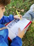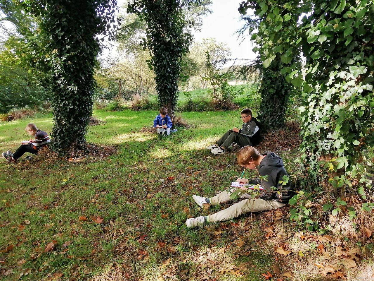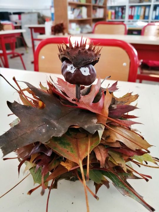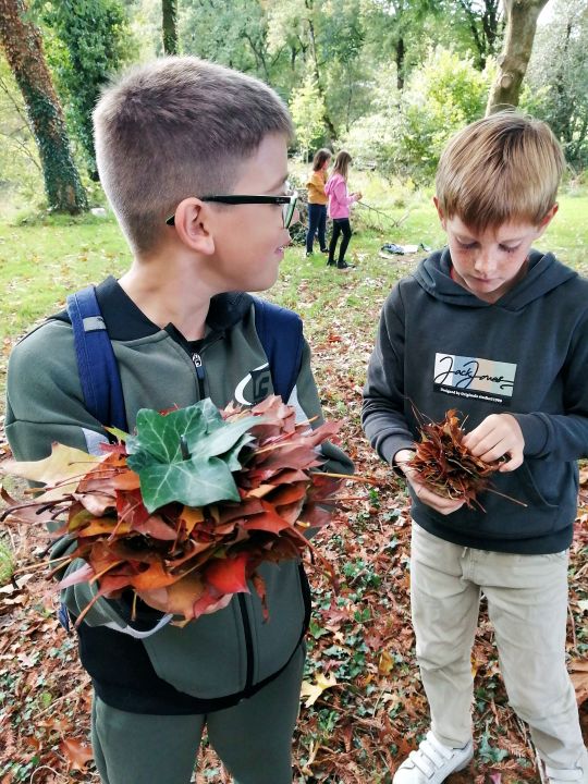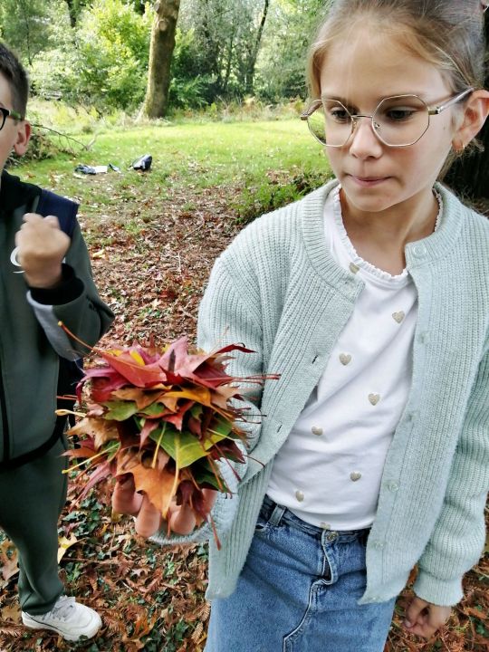 Nous avons terminé notre après-midi en collectant des feuilles 🍃🍂🍁pour le corps du bonhomme marron. 🤗