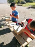 Après les mesures et le sciage des planches, il faut poncer et clouer les pièces. 🔨